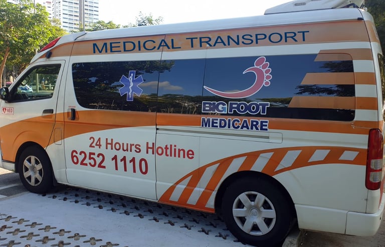 Located in the heart of Singapore, Bigfoot Medicare offers accessible transportation services for patients requiring medical assistance.